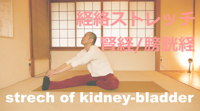 ツボや経絡への施術の前に行う経絡というスジを補助付きでストレッチするやり方をご紹介していますが、肺・大腸経、脾・胃経に続き今回は3番目の腎経・膀胱経のストレッチです。